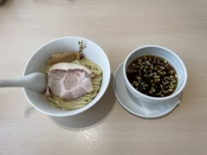 旦那さんが食べたのはつけ麺。こちらもシンプルなつけ麺ですね。