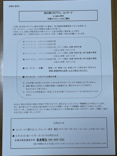 ということで地域住民に配られた資料によりますとスタジアム内特殊演出についてのリハーサルは