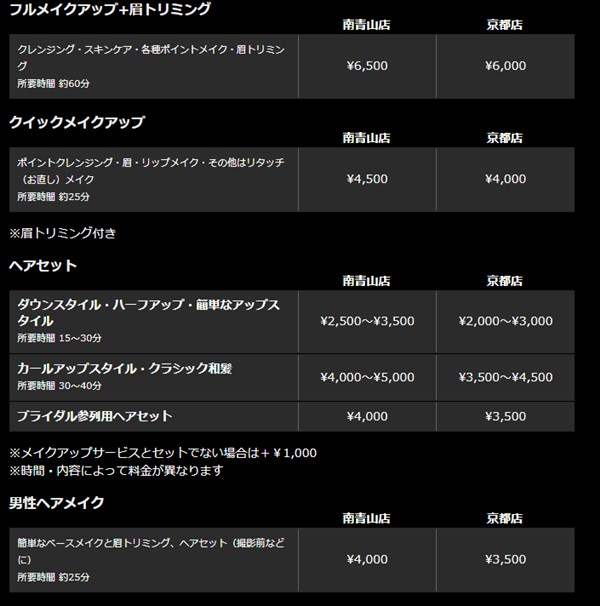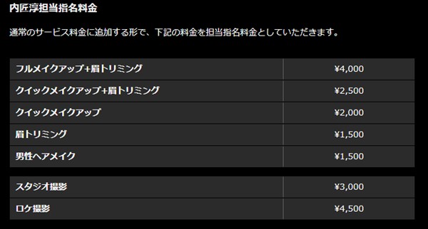 ヘアメイク、撮影に内匠淳さんを指名すると、以下の追加料金がかかります。