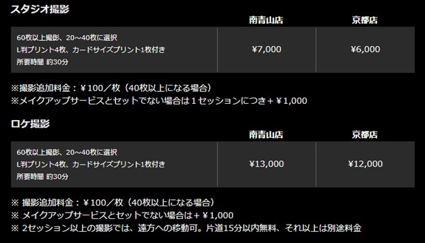 撮影プランは男女共通1種類、男性向け1種類、女性向け2種類です。詳しくはスターメーカーのHPをご覧ください。