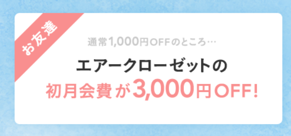 - 追記:私からエアークローゼットを登録してもらえると初回月会費の割引あります。