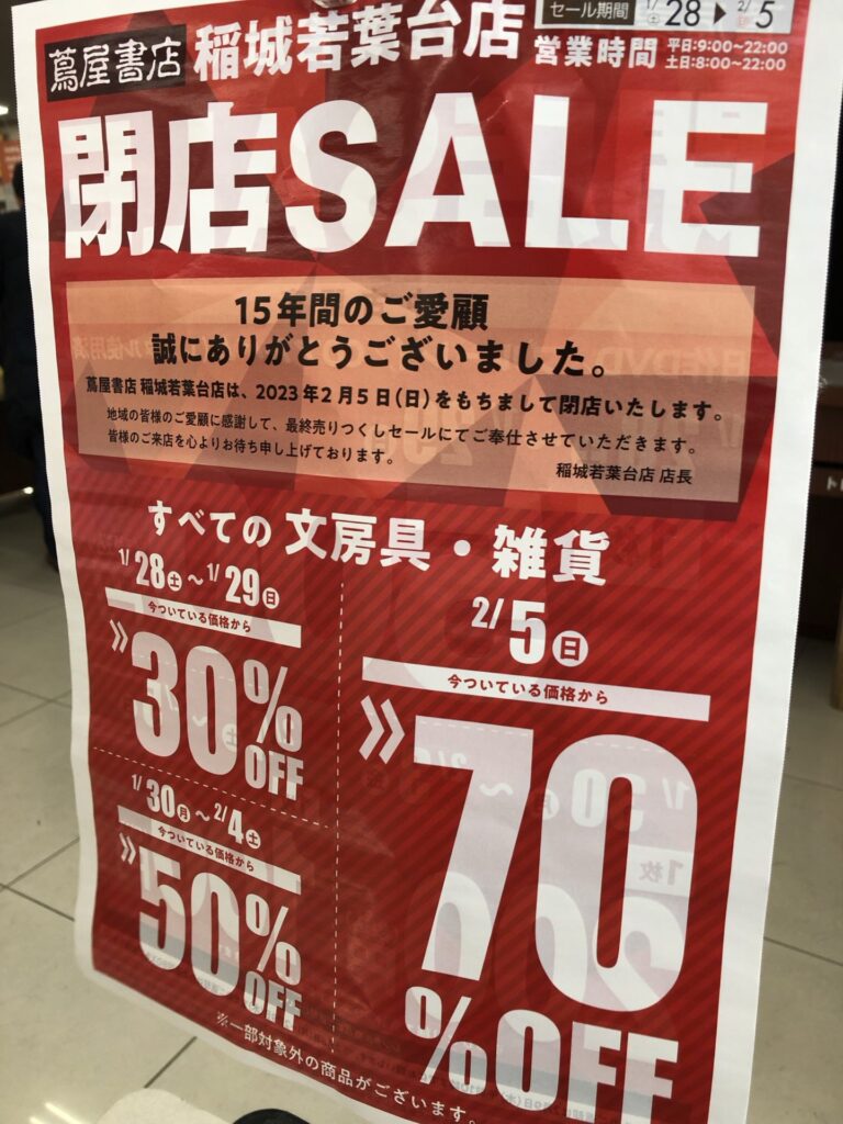 蔦屋書店稲城若葉台店の閉店セール・クローズドセールは?