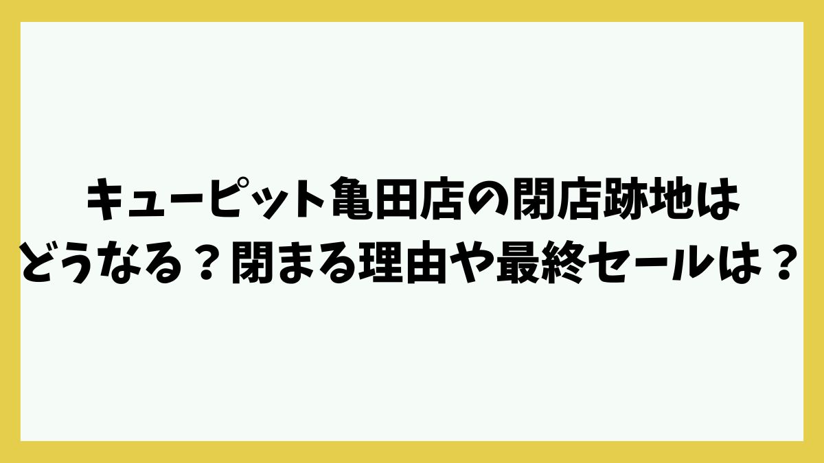 キューピット亀田店が閉店するというニュースが飛び込んできました。閉店日は2023年3月20日(月)ということです。閉店したあとの跡地はどうなるのか、閉店理由、閉店最終セールなどの情報も知りたいところですよね。