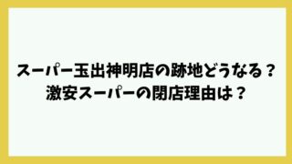 閉店 スーパー玉出神明店の跡地どうなる?激安スーパーの閉店理由は? スーパー玉出神明店が閉店するというニュースが飛び込んできました。激安スーパーかつ24時間営業ということでとても使いやすいスーパーでファンも多かっただけに閉店ととてもショッキングなニュースですね。 それでは閉店後の跡地はどうなるのでしょうか。... 2023.06.04 閉店