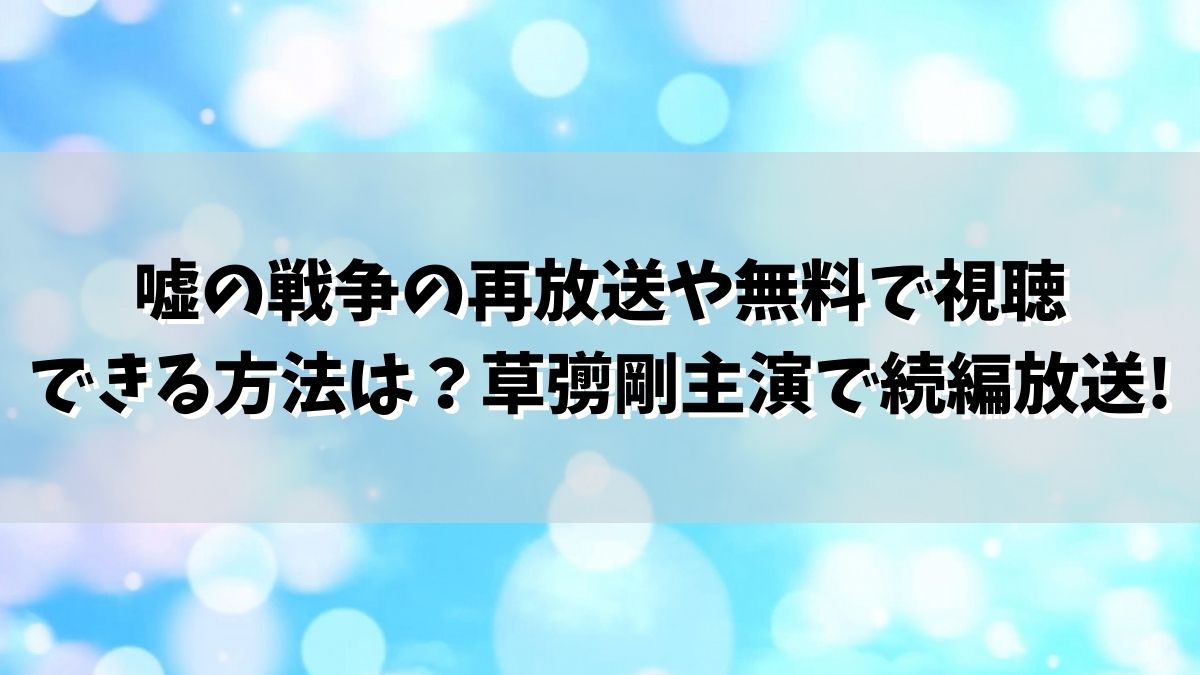 嘘の戦争の再放送や無料で視聴できる方法は?草彅剛主演で続編の放送決定
