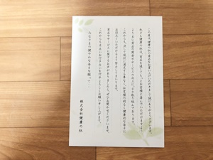 中にはお便り、請求書、商品が入っていました。2個セットだと送料無料です。