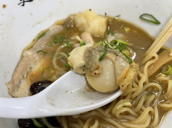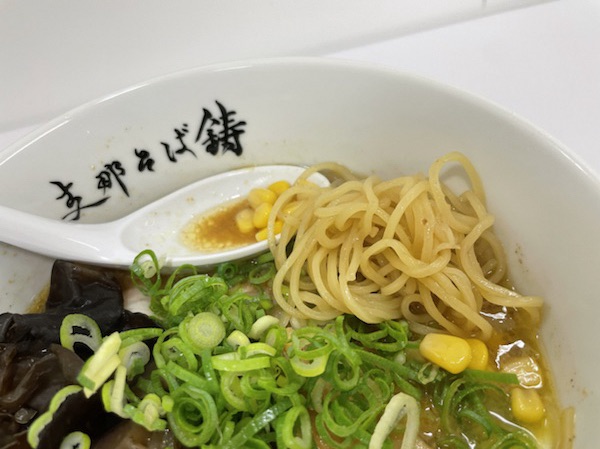 麺は細くあまり縮れていません。スープが濃厚なので縮れて絡ませるよりはストレートに近い麺のほうが馴染むようです。