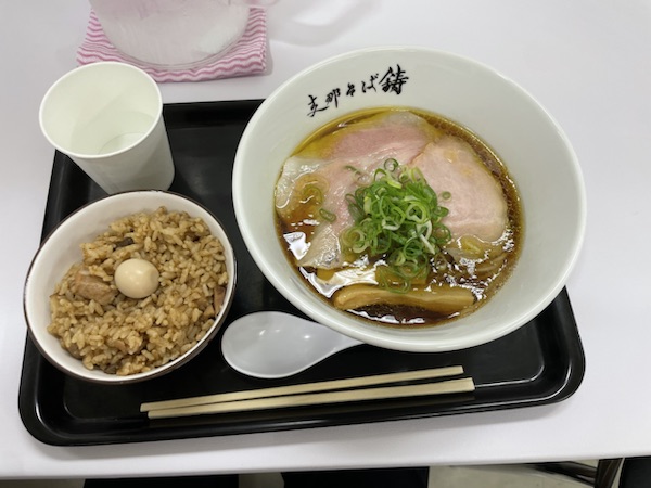 旦那さんが食べた醤油ラーメンと混ぜご飯もとても出汁がきいていました。後述
