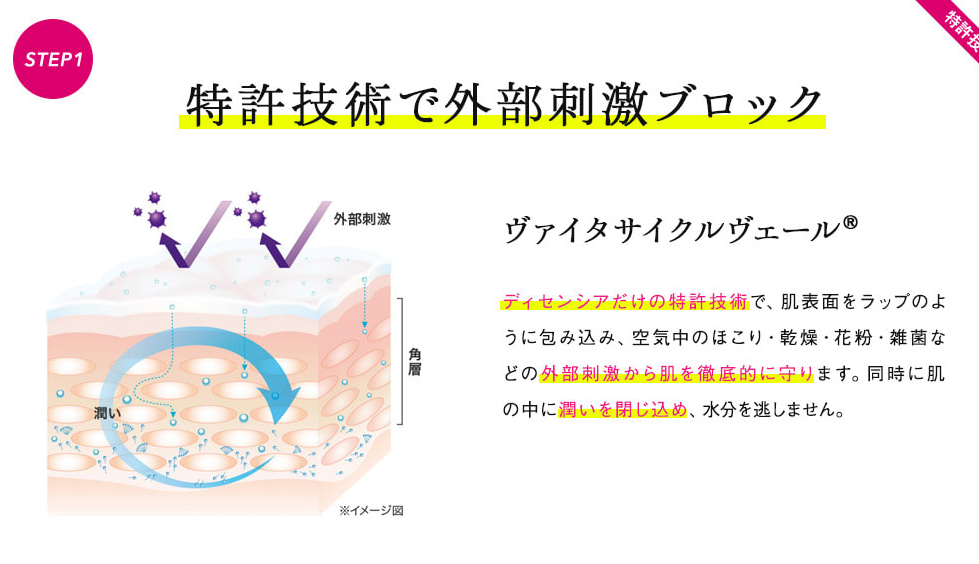 ディセンシアは敏感肌のための独自技術を開発しています。それがヴァイタサイクルヴェールと呼ばれるもの。