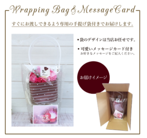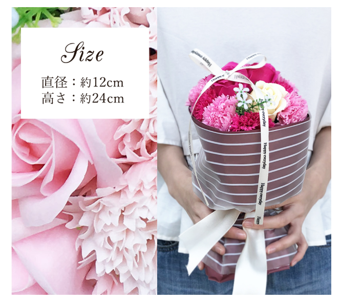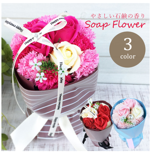 長く飾ってもらいたいので、ソープフラワーにしました。