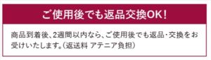 万が一、お肌に合わなかったとしても返品を受けてくれるので心強いですね。
