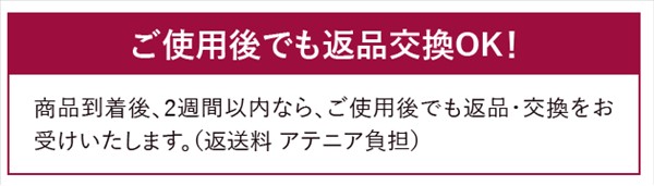 商品到着後、2週間以内ならご使用後でも返品・交換を受けつけています。