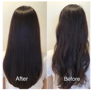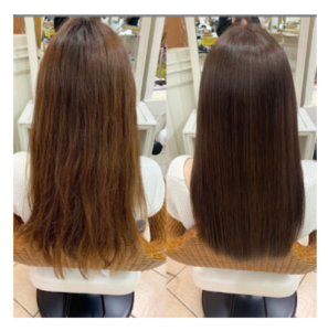 アイロンの前と後に毛先にさっとつけるだけで、セットの後には見違えるくらいにツルツルになっています。