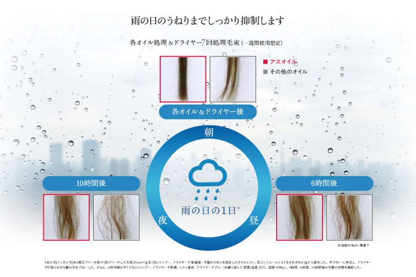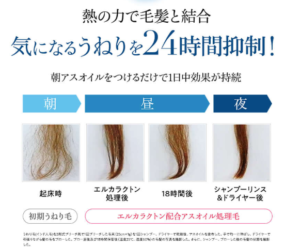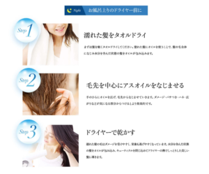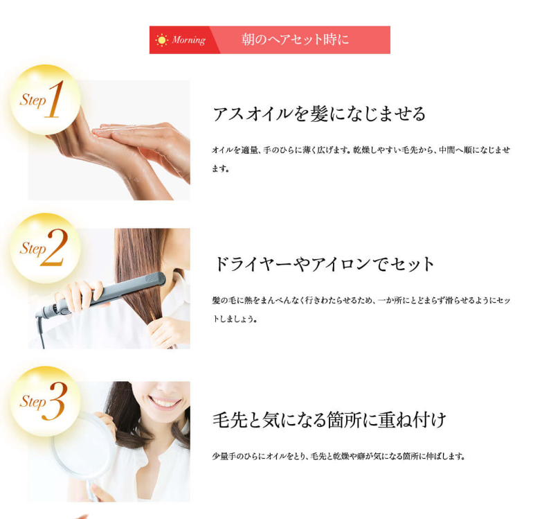 熱反応型ということでドライヤーを使う前にアスオイルを使うことでツヤツヤな髪になるそうです。