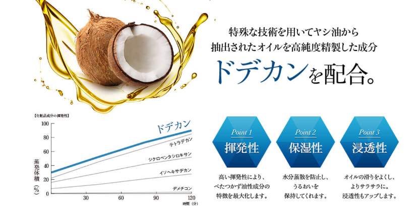 その他にヤシ油から抽出されたオイルのドデカンを配合しています。