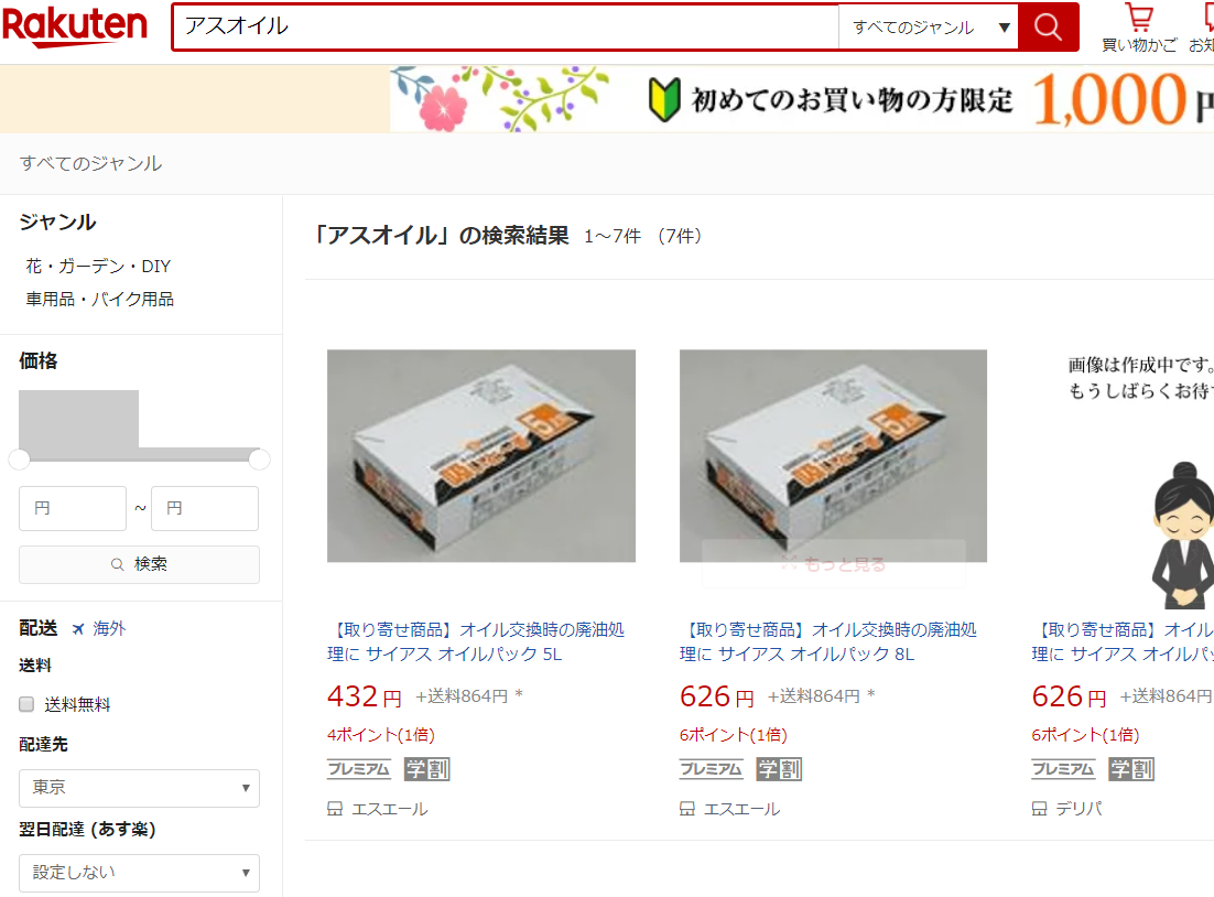 このようにアスオイルは楽天で販売していないことがわかりました。
