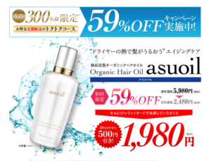 asuoil(アスオイル)は公式販売ページで買うと、通常価格5,980円が59%オフになり、2,480円で購入できます。