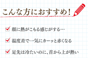 「ほてり」や「のぼせ」など、熱感を伴う赤みで