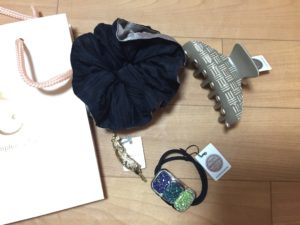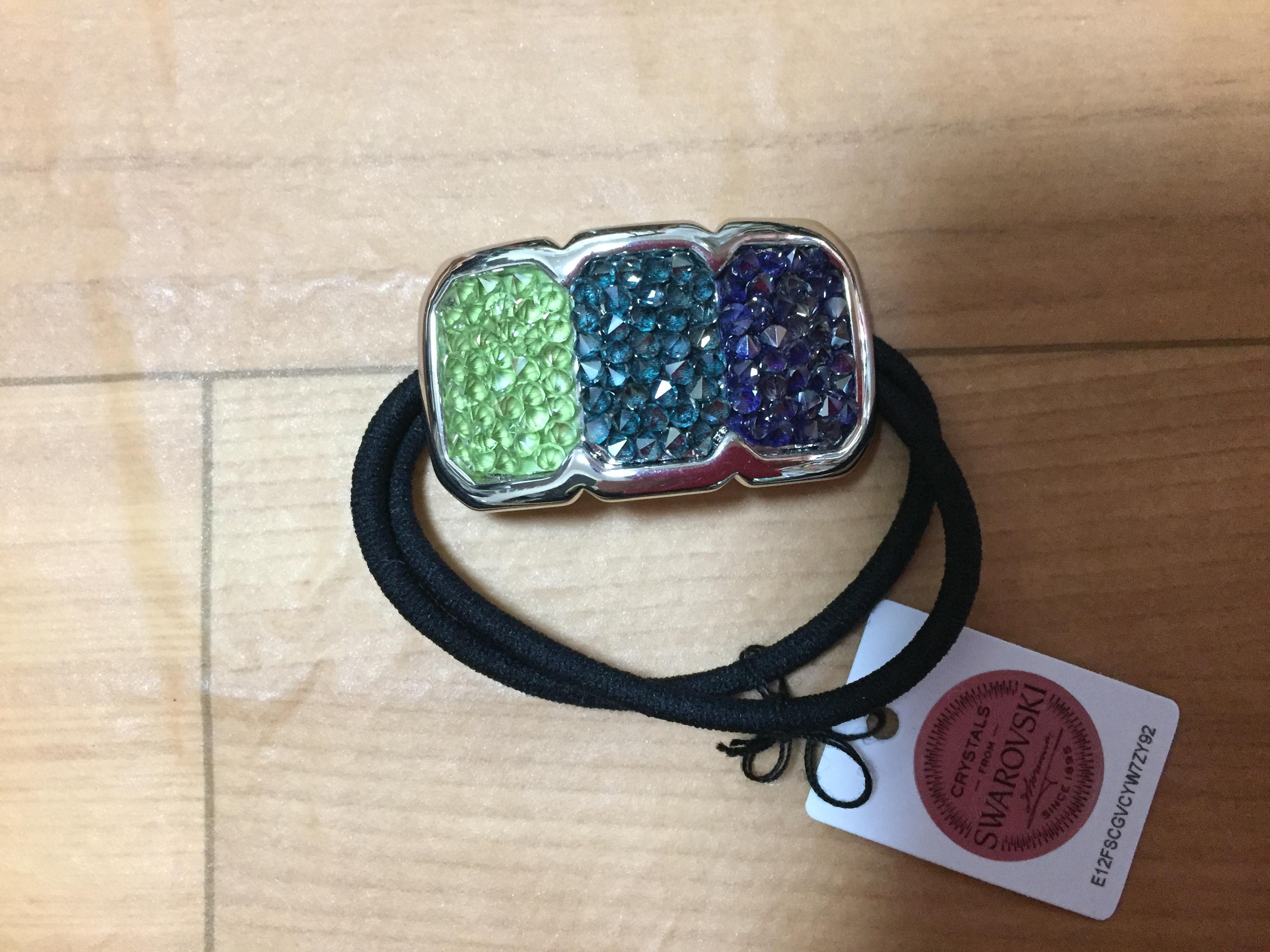ヘアゴム。高級品はゴムが2本なんですね。スワロフスキーです。