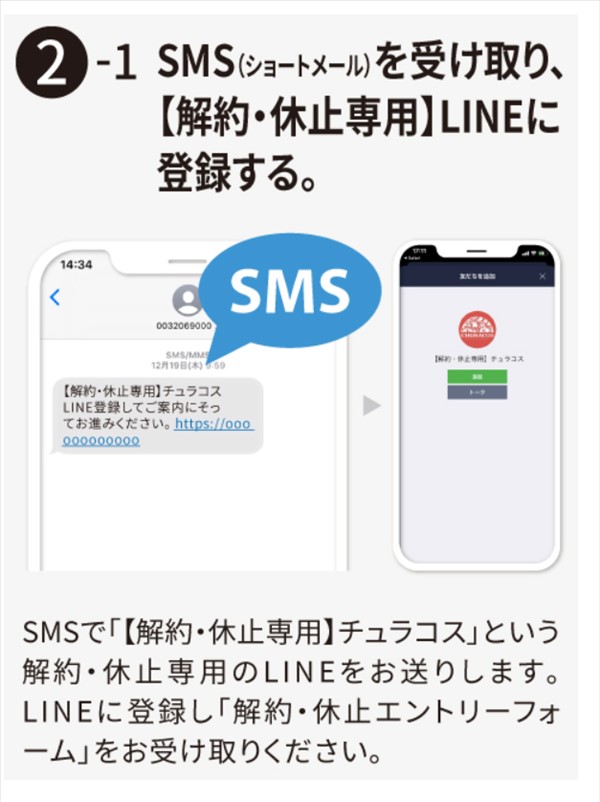 ショートメールには「【解約・休止専用】LINE」の登録URLが記載されています。