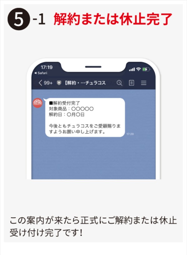 ※LINEが使えないなどのやむを得ない理由の場合は、サポートメールでの解約も出来ます。