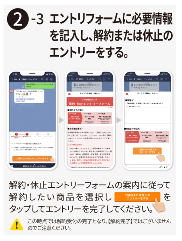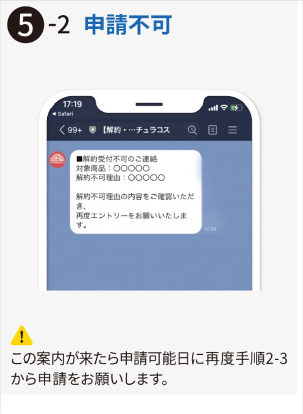 電話で教えていただいた方法でLINEで解約の申請をします。