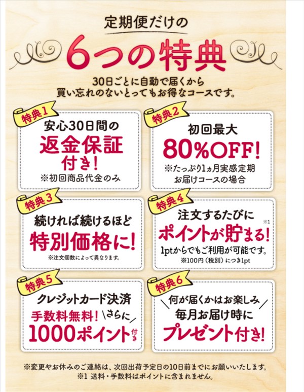そんなわらびはだの定期コースですが、どんな特典があるのでしょうか?