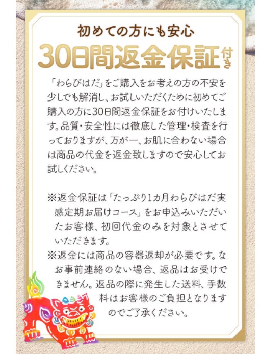 またどうしてもお肌に合わなくて使えなかったという場合でも、30日間の返金保証があるので安心して使うことができます。
