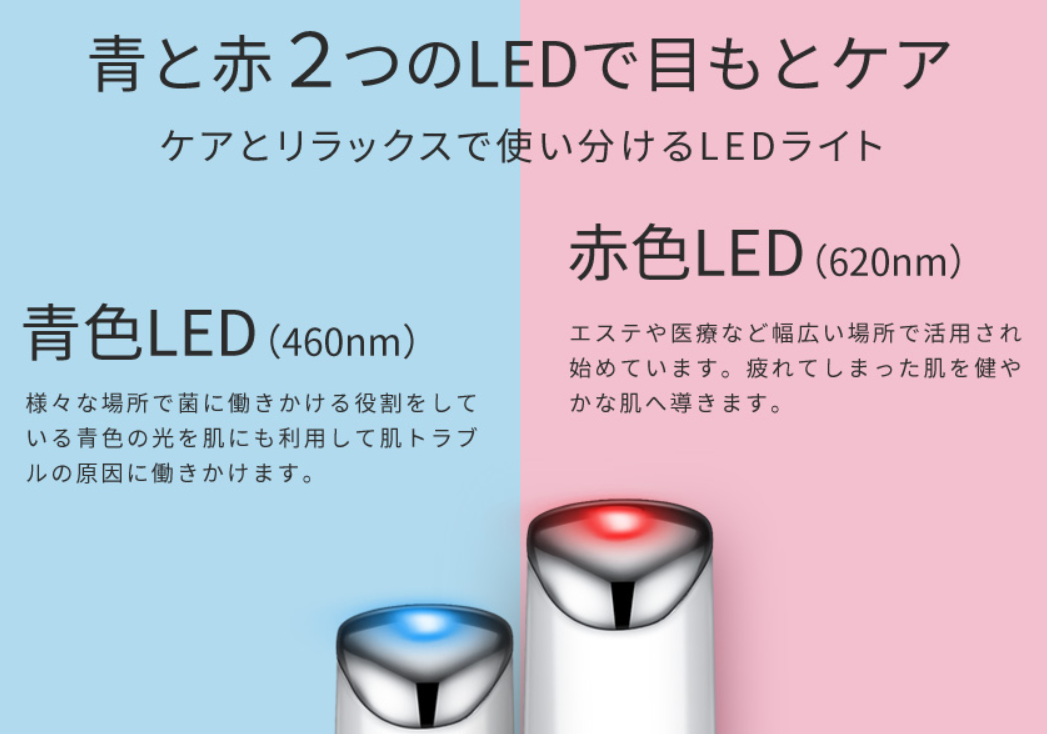 青色LED、赤色LEDでケアとリラックスを使いわけできます。