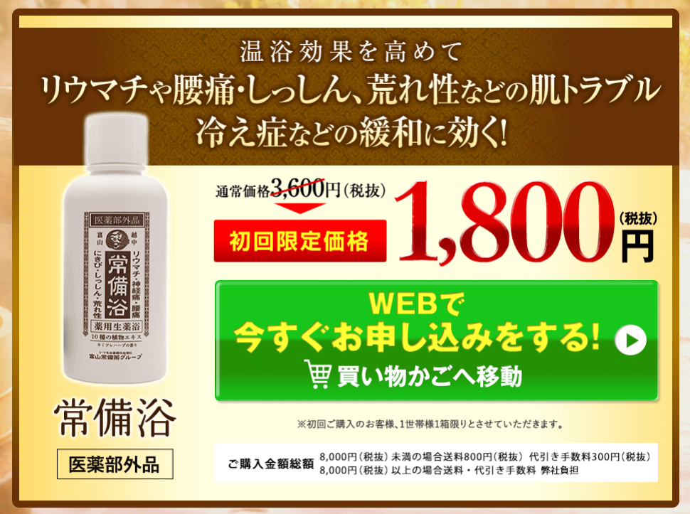 >>>常備浴の公式サイトでお得情報をチェックする常備浴の成分・副作用
