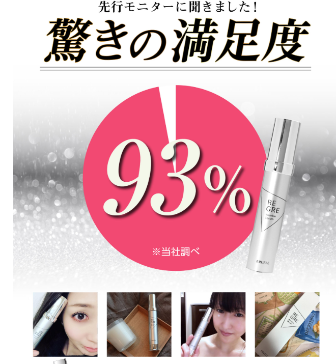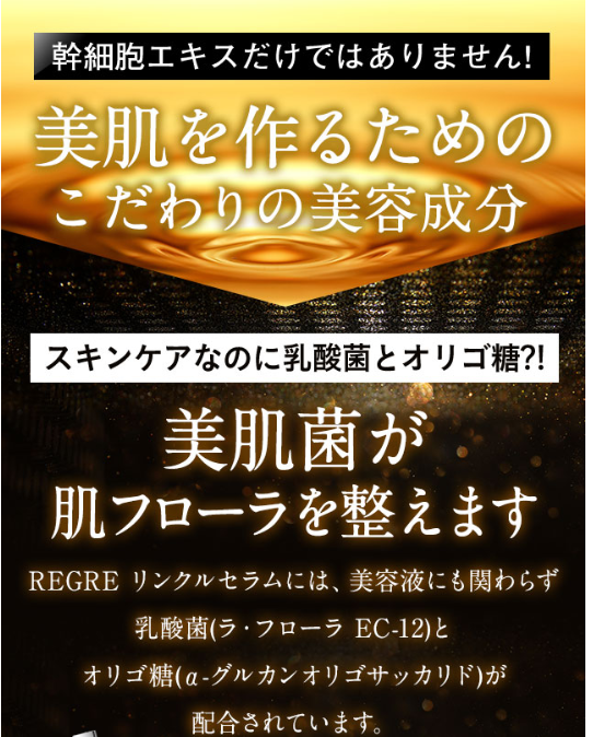 リグレリンクルセラムはヒト型幹細胞エキス配合で内側から潤うと先行モニターで93%の方が満足と答えた商品です。