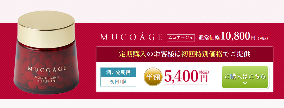 MUCOAGEは通常10,800円のところ半額の5400円で購入できます。
