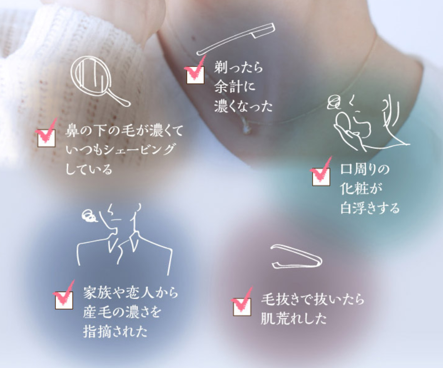 ストレスなどで濃くなった髭のような産毛にミラセレブです。