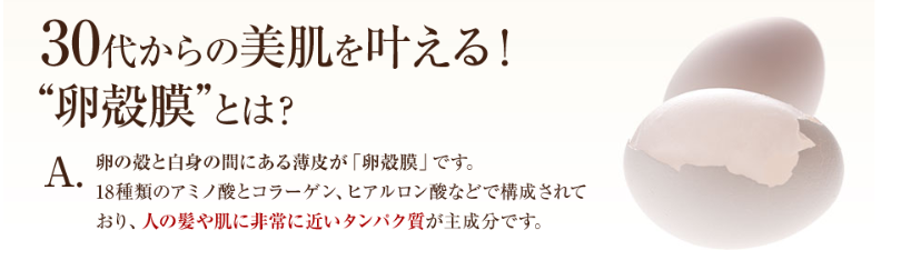 卵殻膜には18種類のアミノ酸とコラーゲン、ヒアルロン酸などで構成されていて、人の髪や肌に非常に近いたんぱく質です。