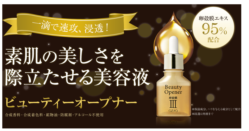 ビューティーオープナーは卵殻膜美容液、国内売り上げナンバーワン。
