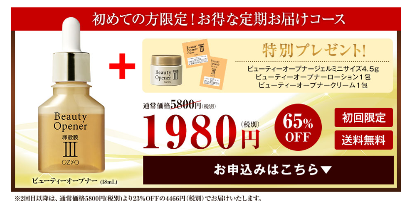 65%オフで購入できて、ビューティーオープナーのライン使いがお試しできてしまうお得なキャンペーンです。